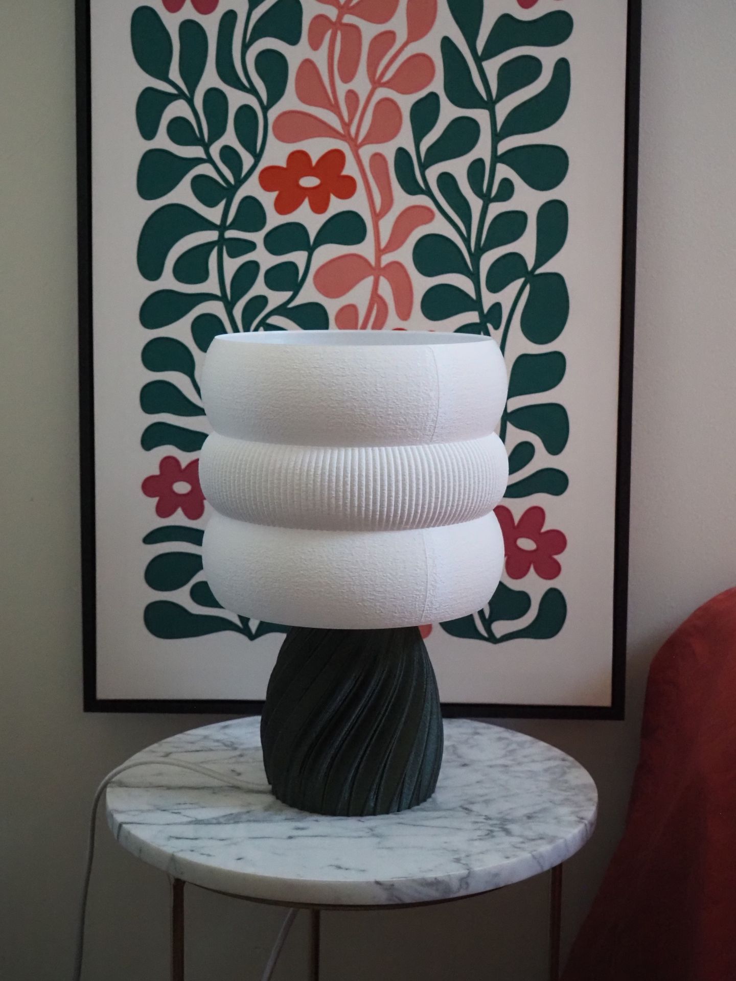 Pour accompagner ces lumières, quatre pieds interchangeables rendent hommage aux êtres légendaires qui entoure le cygne: Odette, Orphée, Zeus et Hamsa. Chacun renvoie une interprétation différente, comme la grâce, la poésie, la puissance ou la protection, et dialogue avec les abat-jours pour créer des combinaisons uniques.